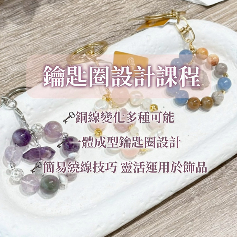 想親手打造獨一無二的水晶鑰匙圈嗎?在這堂課中,你將學習如何使用金屬線技巧,將天然水晶包裹並設計成精緻又有個性的鑰匙圈。不需要任何基礎,我們將一步步帶你完成屬於你的能量飾品!