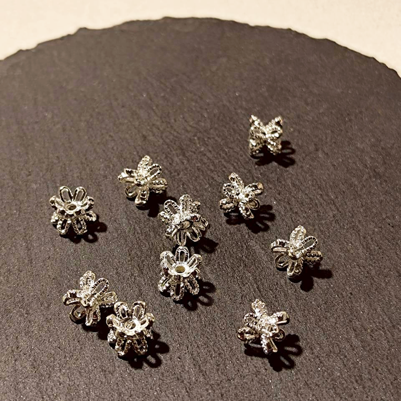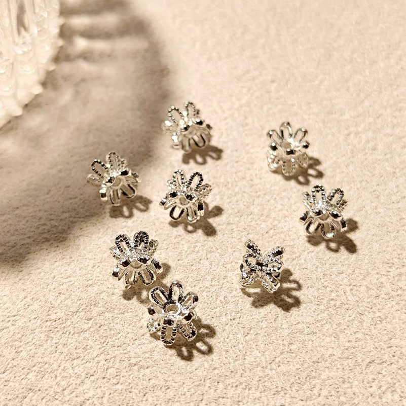 花影雙面花托 雙面花紋花托 珠托 銀色 隔珠 隔片 約6mm 10入 金屬配件