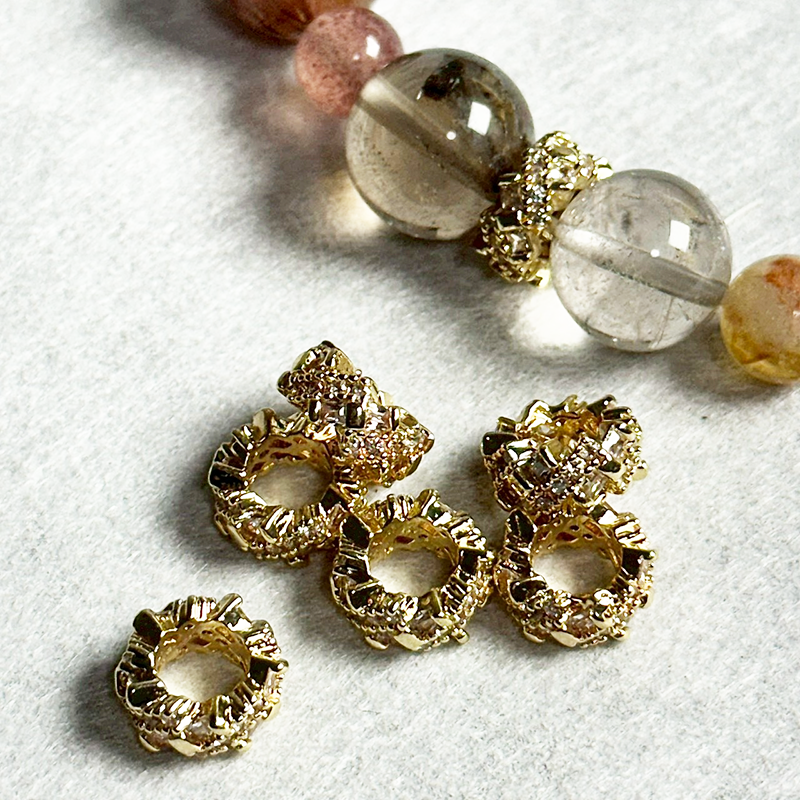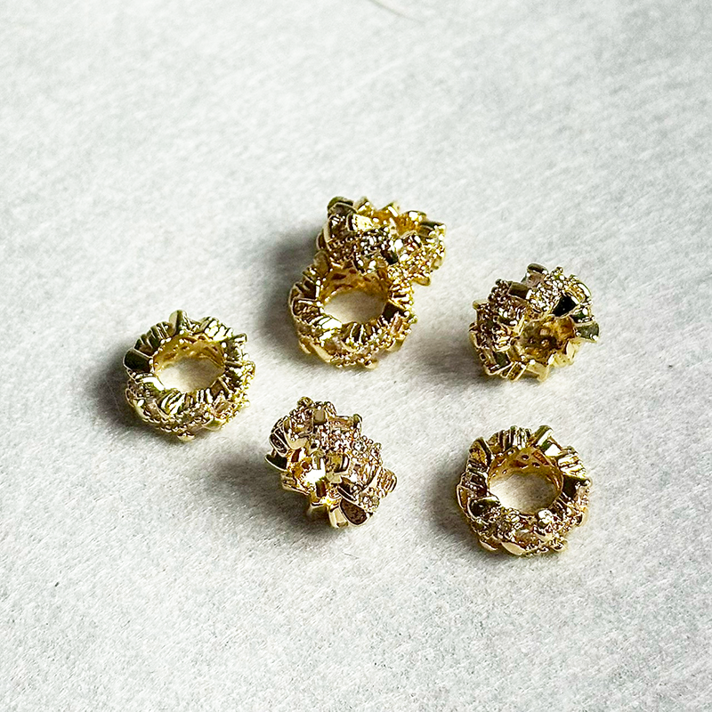 銅鍍14k/18k/24K飾品配件真金系列的材料在密封下保色約長達一兩年之久,使用時盡量避免刮傷表層配載後保色也可達數月,相較於普通電鍍材料ㄧ碰水就養化,真金保色更久,看上去也更精緻!光澤與它相對的保色時間,讓銅鍍真金系列的飾品材料為飾品設計品牌愛用素材!